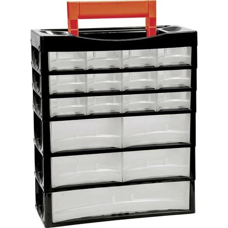 Magasin en plastique pour un rangement parfait de vos petites pièces. Les tiroirs sont sécurisés par des crochets de protection dans le magasin. Ce texte a été traduit par une machine.
