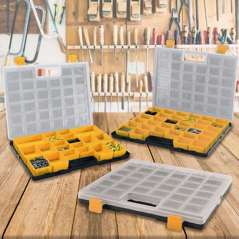 Corps en polypropylène, couvercle transparent, 20 bacs intérieurs amovibles, dimensions 372 x 314 x (H) 40 mm
