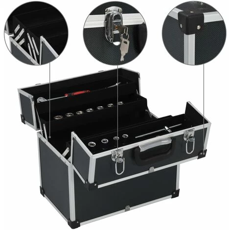 ASUPERMALL Boite A Outils 43,5 X 22,5 X 34 Cm Noir Aluminium
