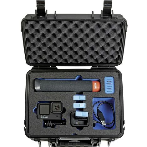 Mallette de transport rigide B&W Outdoor case type 2000, Inlay : GoPro Hero 9 et accessoires (mallette rigide IP67, Ă©tanche, dimensions intĂ©rieures 25×17,5×15,5cm, noir)