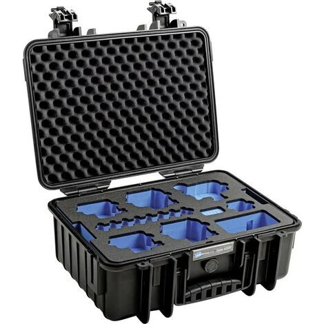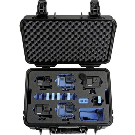 Mallette de transport rigide B&W Outdoor case type 4000, insert : 5x GoPro Hero 9, mod et accessoires (mallette rigide IP67, étanche, dimensions intérieures 38,5×26,5×16,5cm, noir)