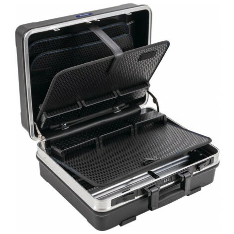 Coquilles en matériau ABS à haute pénétration · cadre en aluminium robuste avec protection anti-choc protège l’outil et la valise · noir · 2 serrures à bascule verrouillable et un cadenas de chiffres assurent la plus grande sécurité · 4 pieds de sol supplémentaires assurent une stabilité particulière · confort maximum par poignée amovible · La coque du sol est modulable par des passerelles en aluminium · Compartiment supplémentaire de documents au format A4 · avec couvercle de charnière et porte-couvercle de sécurité Dimensions internes : (B x X H) 460 x 180 x 355 mm Equipement : Panneau d’outils amovible dans le couvercle avec 3 porte-outils modulaires pour outils D. 21mm sur l’avant et l’arrière, plateau amovible pour le couvercle avec 3 porte-outils modulaires pour outils jusqu’à D. 28mm Autres caractéristiques techniques: · Équipement : avec module d’outils. Contenu: 29 l, Largeur: 500 mm, Capacité de charge: 25 kg, Profondeur extérieure: 200 mm, Couleur: noir, Hauteur extérieure: 420 mm, Largeur extérieure: 500 mm, Marque: PROMAT, Matériau: plastique ABS, Cadre: cadre en aluminium. Contenu: 29 l, Largeur: 500 mm, Capacité de charge: 25 kg, Profondeur extérieure: 200 mm, Couleur: noir, Hauteur extérieure: 420 mm, Largeur extérieure: 500 mm, Marque: PROMAT, Matériau: plastique ABS, Cadre: cadre en aluminium