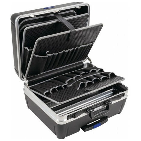 rollbar · valise Ă outils mobile apte Ă voler · Coques en matĂ©riau HDPE robuste · cadre en aluminium robuste avec protection anti-choc protège l’outil et la valise · noir · 2 serrures Ă bascule verrouillable et un cadenas de chiffres assurent la plus grande sĂ©curitĂ© · La coque du sol est modulable par des passerelles en aluminium · Compartiment supplĂ©mentaire de documents au format A4 · avec couvercle de charnière et porte-couvercle de sĂ©curitĂ© Dimensions extĂ©rieures : (B x X H) 505 x 280 x 440 mm · Équipement: 2 panneaux d’outils amovibles dans le couvercle avec 23 sacs Ă outils Ă l’avant et Ă l’arrière, plateau amovible pour plateau de plancher avec 15 sacs Ă outils Autres caractĂ©ristiques techniques: · Profondeur extĂ©rieure : 280mm · Hauteur extĂ©rieure : 440mm · Largeur extĂ©rieure : 505mm · Cadre: cadre en aluminium. Contenu: 42 l, CapacitĂ© de charge: 35 kg, Couleur: noir, Marque: PROMAT, Profondeur intĂ©rieure: 230 mm, Hauteur intĂ©rieure: 375 mm, MatĂ©riau: matĂ©riau : PEHD, Largeur intĂ©rieure: 485 mm. Contenu: 42 l, CapacitĂ© de charge: 35 kg, Couleur: noir, Marque: PROMAT, Profondeur intĂ©rieure: 230 mm, Hauteur intĂ©rieure: 375 mm, MatĂ©riau: matĂ©riau : PEHD, Largeur intĂ©rieure: 485 mm