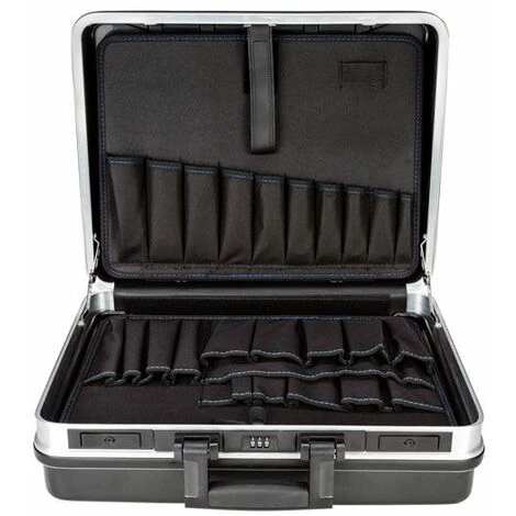 - Panneau porte-outils extractible avec 22 poches pour outils sur l’avant et l’arrière dans le couvercle