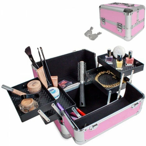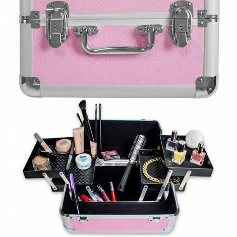 Présentation produit: Mallette trolley valise esthétique coiffure boîte à maquillage bijoux rose