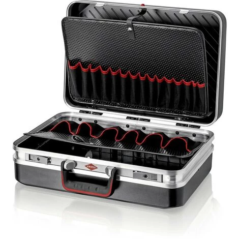 Mallette robuste en ABS avec cadre en aluminium. Poignées solides et serrures verrouillables pour un transport sûr. De nombreux compartiments permettent de ranger une multitude d’outils.