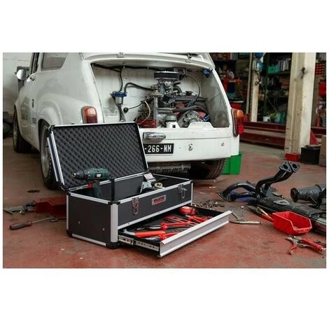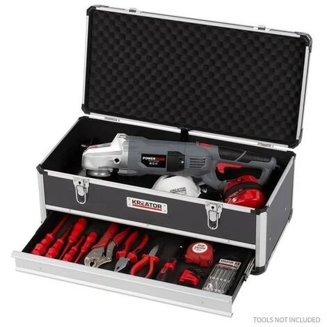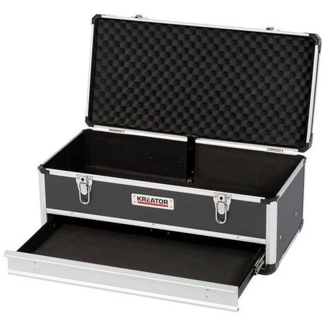 Ce coffre de rangement avec cadre en aluminium de Kreator offre de la place pour tous vos petits et gros outils. Vous les rangez soit dans le compartiment supérieur qui peut porter jusqu’à 10 kg (p.ex. une meuleuse d’angle de 230 mm), soit dans le tiroir en bas. Les petits matériaux sont donc bien séparés. Il est seulement possible d’ouvrir les tiroirs après avoir ouvert le coffre même. Vos outils sont donc stockés de manière aussi sûre que possible, certainement vu que le KRT640603B dispose aussi de 2 serrures et 2 clés incluses.