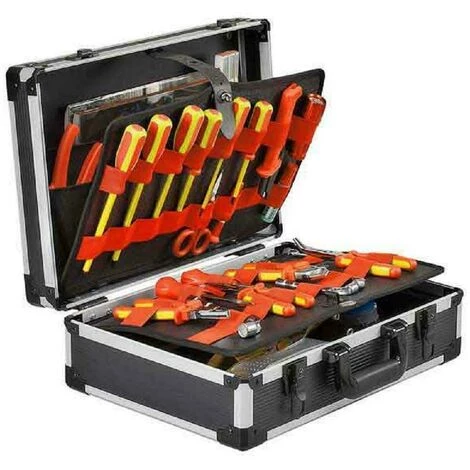 MALLETTE À OUTILS (NON INCLUSE) La mallette à outils le Officine Elettriche est un modèle réalisé en ABS thermoformé de forte épaisseur. Le nouveau design de la carrosserie et des intérieurs lui confère un aspect moderne et fonctionnel, et il est le résultat d’une recherche constante du meilleur rapport qualité/prix. Caractéristiques – Double serrure avec clé – Double loquet d’ouverture du couvercle – Charnière triple en métal – Fond avec diviseurs réglables – Poignée souple – Porte-documents – Panneau porte-outils du couvercle avec élastiques des deux côtés – Panneau porte-outils sur le fond avec élastiques sur un côté OUTILS NON INCLUS – Dimensions internes : A 440 / B 340 / C 190 / D 80 / E 110 – Poids : Kg 3,5Matériau : ABS