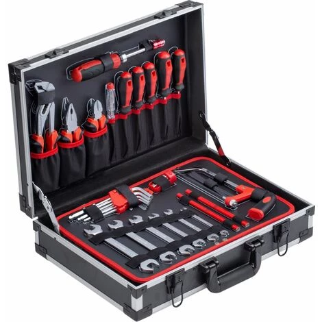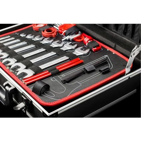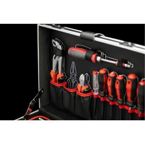 Meister Boîte à outils 109 pièces Avec le boîtier de l’outil de 109 pièces de Master, vous obtenez un assortiment suffisamment positionné. Découvrez la variété d’outils à main de haute qualité – des tournevis sur des inserts de clé à douille et du craquelin, au marteau de serrurier, à la lampe et aux pinces. Que ce soit pour l’atelier, le garage ou le ménage: les produits sélectionnés sont utilisés dans tous les domaines d’application et conviennent à une grande variété d’applications, de la mécanique de précision au montage.