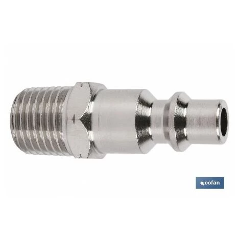 Connettore con filettatura macho di 1/4 3/8 e 1/2. Compatto e leggero per tutti gli impianti ad aria compressa. Filettature invertite non è necessario applicare sigillante.