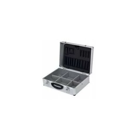 Valise en aluminium. Grande capacitĂ© de chargement. EquipĂ©e d’un panneau porte-outils amovible. Crochets de fermeture mĂ©talliques avec verrouillage Ă clĂ©s.