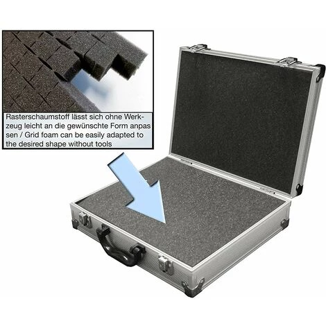 Cette valise Alu protège vos périphériques en voyage ou en déplacement verrouillable permettant une utilisation travail idéal avant tous les dégâts. À l’intérieur se trouve une double mesure dés en mousse, qui peut être adapté à la mallette Contenu individuellement. Les deux rainures dans le bord de fermeture empêche l’entrée de poussière et d’eau, tandis que le ausgepolsterte intérieur préserve les appareils contre les chutes. Dimensions (extérieur)?: 295 x 70 x 195 mm (l x H x P)