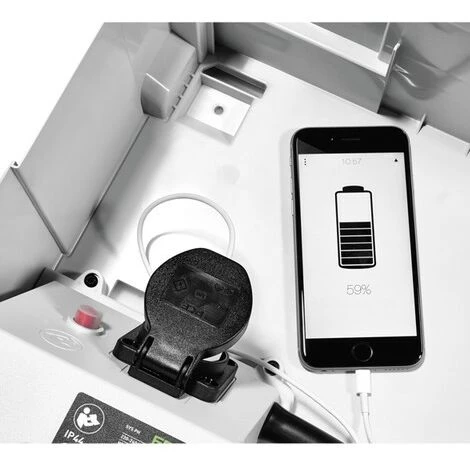 - Alimente en courant jusqu’à quatre outils électroportatifs en parallèle, et si besoin est, un téléphone mobile ou une tablette peuvent être rechargés en plus à l’intérieur.